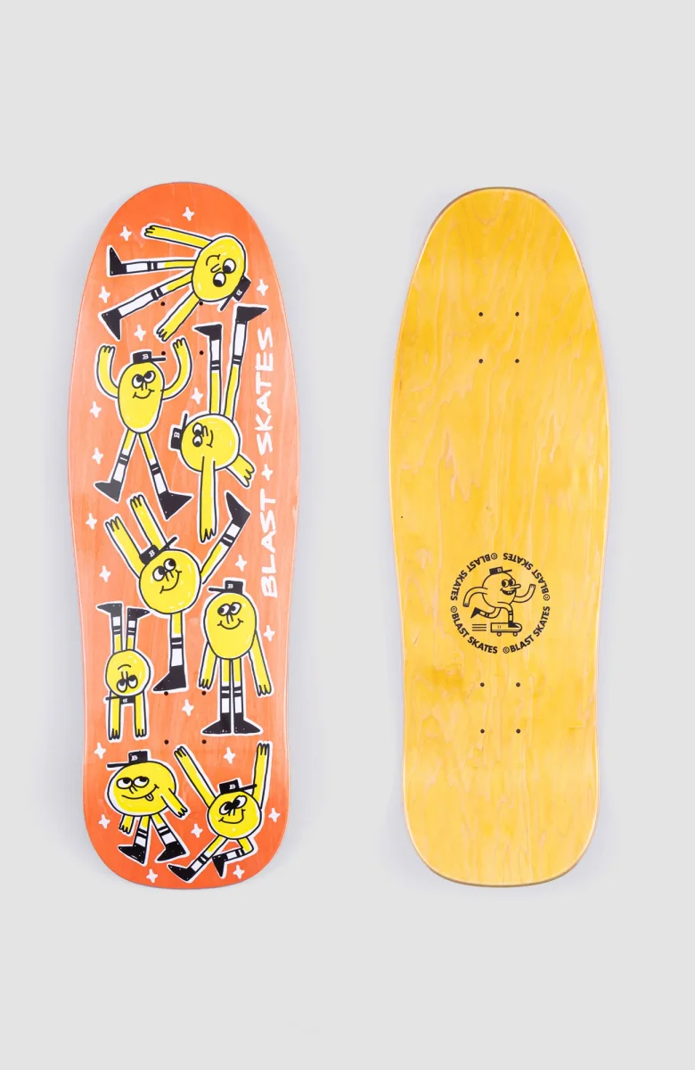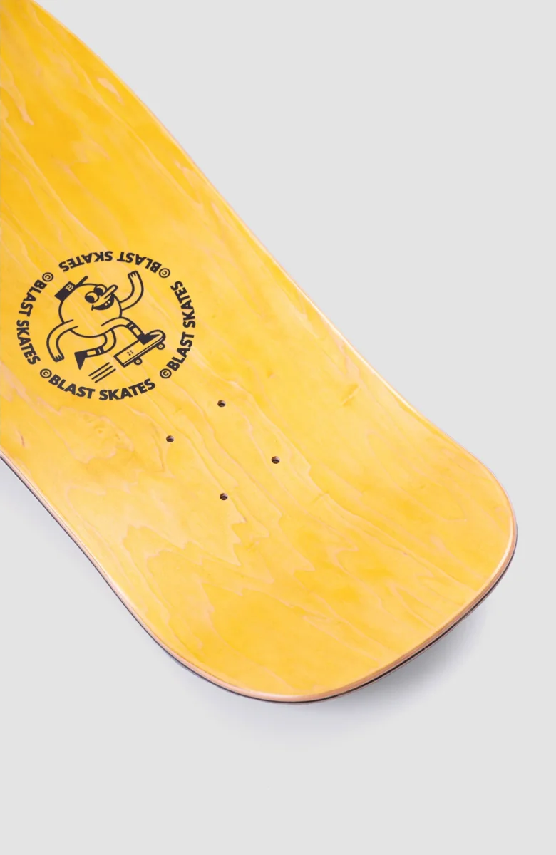 DECK MEASUREMENTS 10″ WIDE 6.75″ TAIL 14.5″ WHEELBASE 5.5″ NOSE DECK INFO Canadian maple & epoxy resin construction Custom BLAST SKATES all terrain concave mold design Signature shape design by: BLAST SKATES Artwork by: Bromley